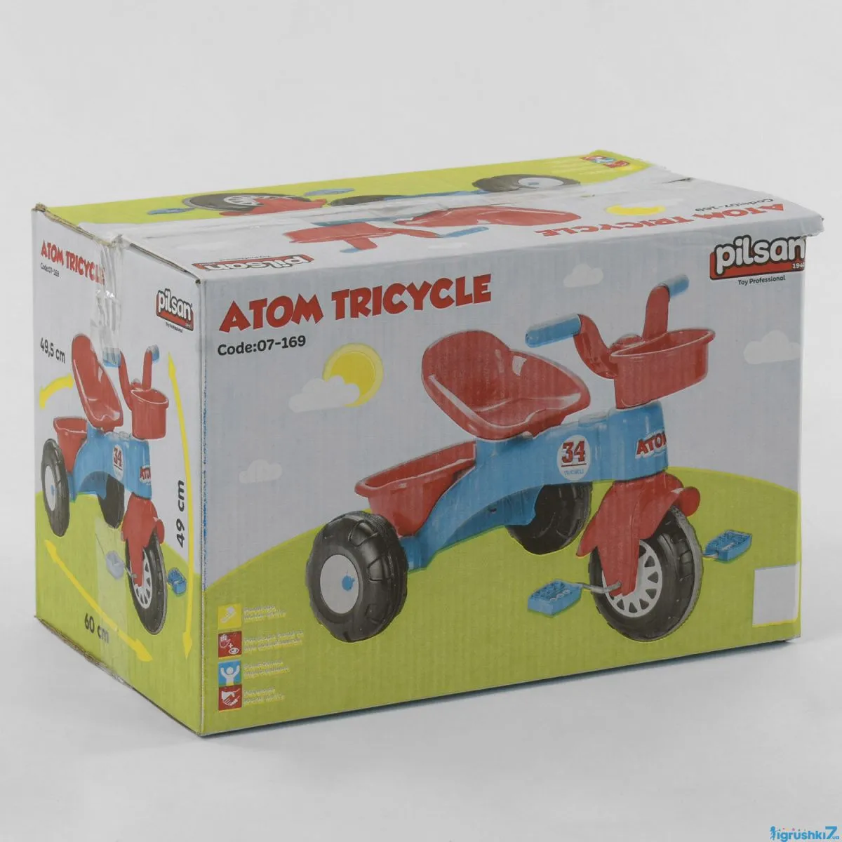 Трехколесный велосипед 07-169 (1) цвет КРАСНО-СИНИЙ, пластиковые колеса с прорезиненной накладкой, корзинка, багажник. Возраст 2+.