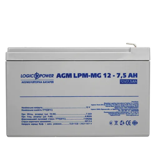 Аккумулятор LPM-MG 12 - 7,5 AH(мультигель) изготовлен с применением технологии AGM (Absorptive Glass Mat).
