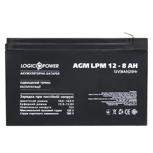 LPM 12 - 8.0 AH – это оптимальное решение для использования в UPS (ИБП), охранных/пожарных системах, систем контроля и управления доступом и прочих.