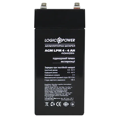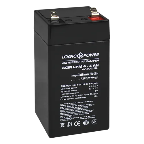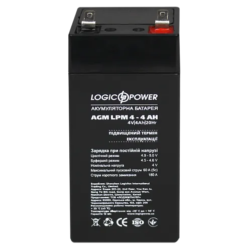 Основные характеристики кислотно-свинцового мелковольтного аккумулятора LPM 4 - 4 AH: