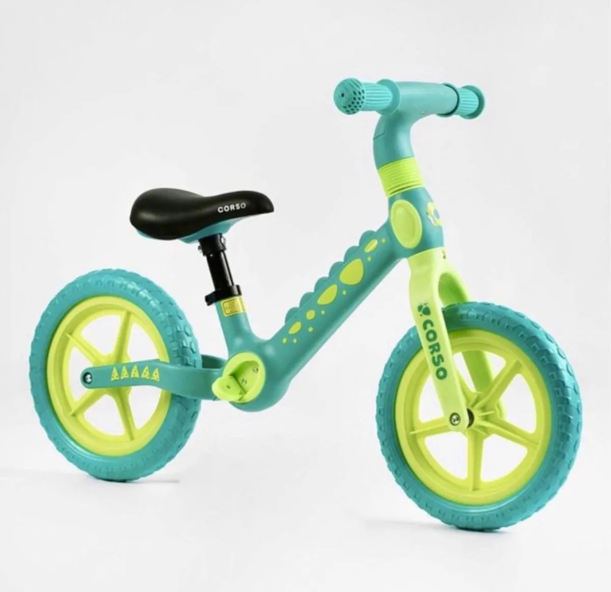 Беговел, велобег CORSO CS-12530, нейлоновая рама и вилка, колесо 12" EVA (ПЕНА) - БИРЮЗОВЫЙ (140182)