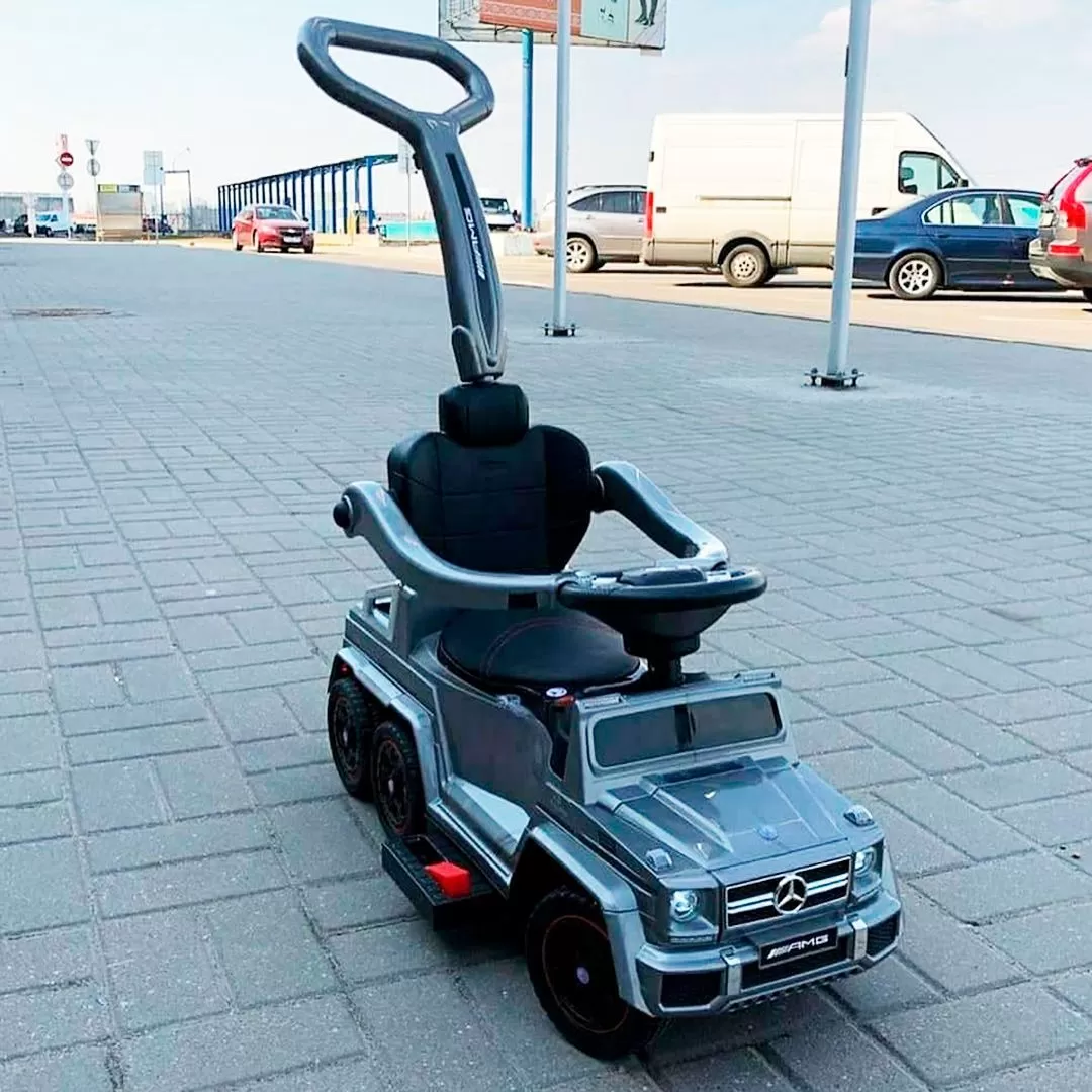 - Детская машина-толокар Mercedes M 3853 EL-11: EVA, кожа, родительская ручка - СЕРЕБРО