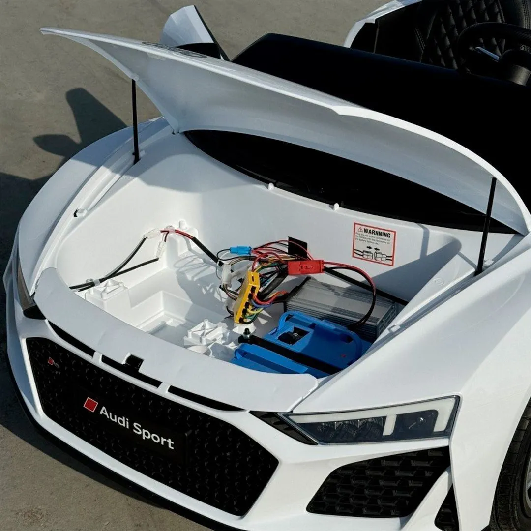 Детский двухместный электромобиль Ауди от компании RAMIZ в черном цвете, выполнен с стиле спортивного AUDI R8. Разгон осуществляется нажатием на педаль газа, торможение - отдельная педаль либо ручной тормоз. В арсенале имеется 1 мощный бесщеточный мотор-диференциал, 1 аккумулятор 24V 14A благодаря которым AUDI R8 Spyder в размере XXL развивает скорость до 16 км/ч и ездит около двух часов на 1 заряде. Кожаное двойное сиденье, надувные колеса, открывающиеся двери, задние амортизаторы, световые эффекты, музыкальное сопровождение через сабвуфер - вот короткий список преимуществ данной модели. Давайте заглянем под капот электромобиля AUDI R8 Spyder >>