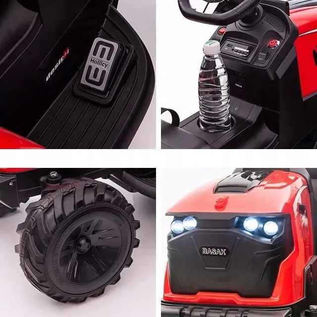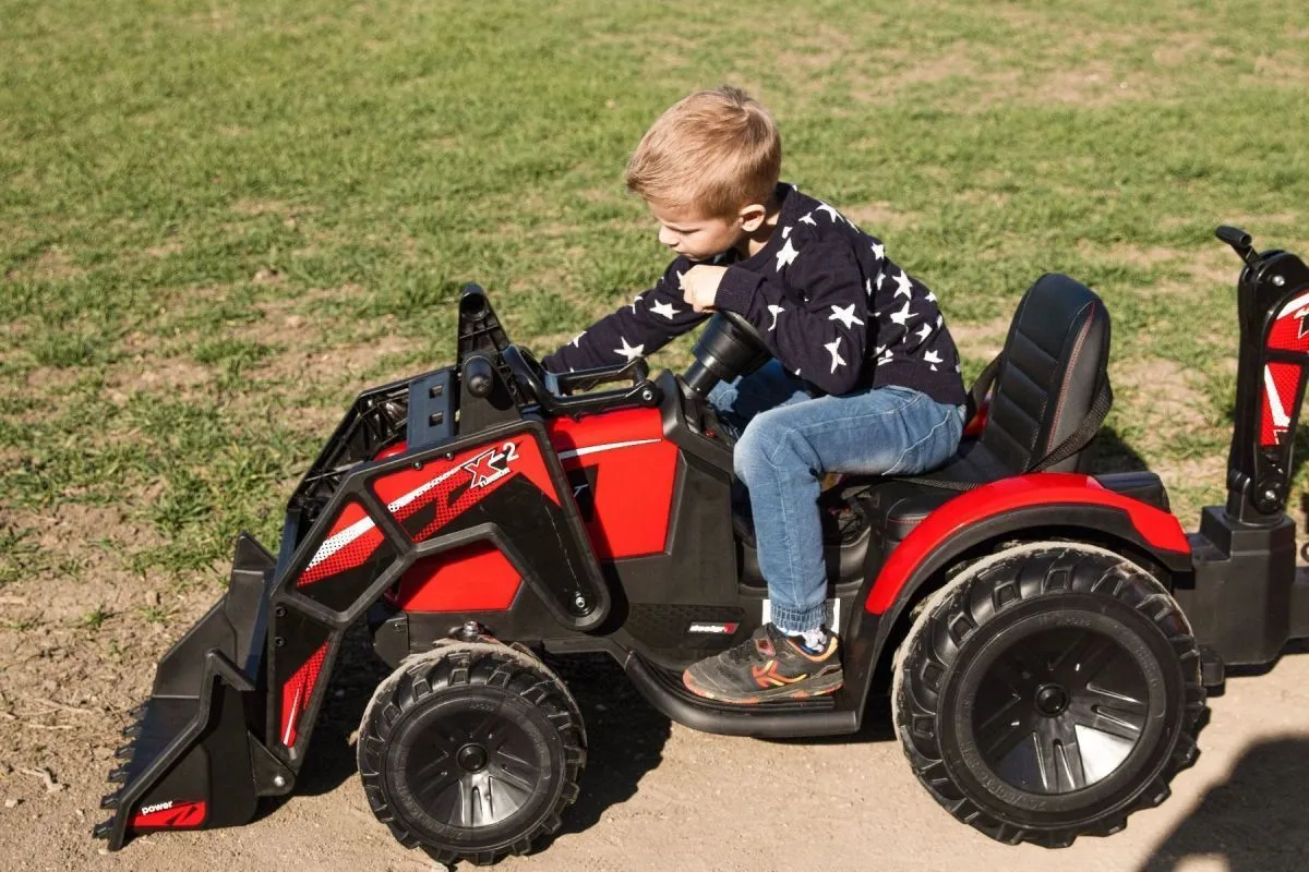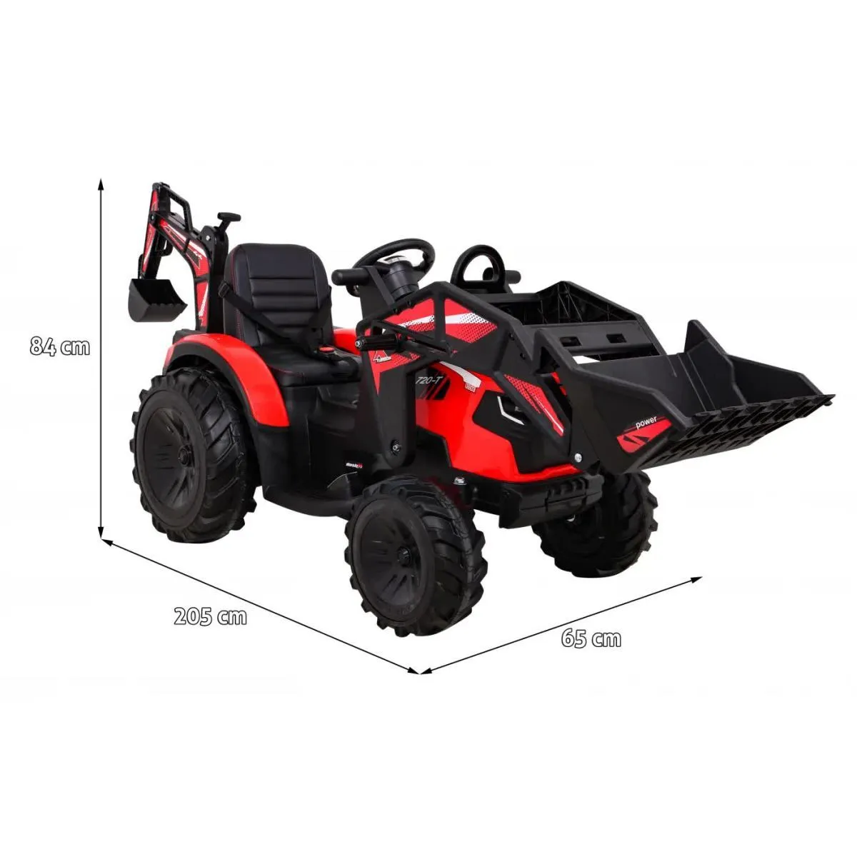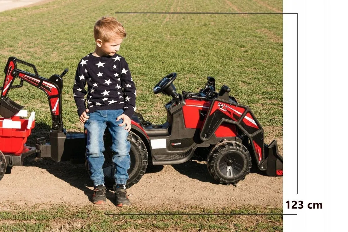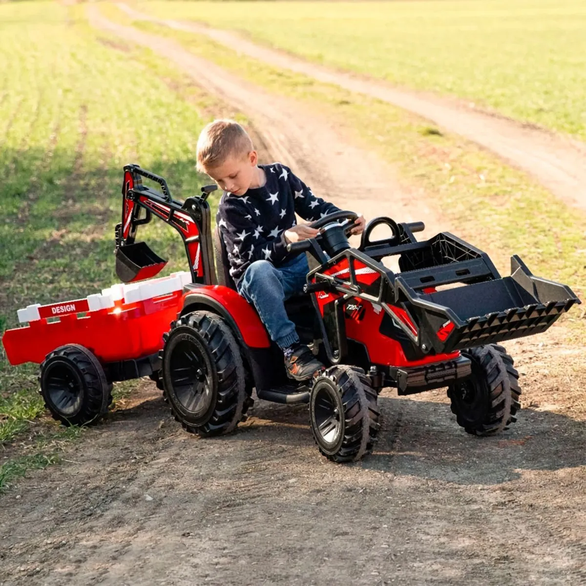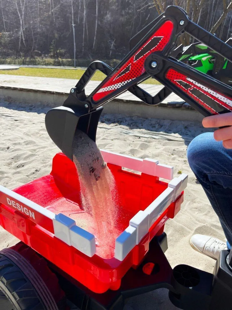Детский трактор, бульдозер, экскаватор Ramiz 720-T: 2х45W, 12V 14Ah, EVA, с прицепом, кожа - КРАСНЫЙ (PA.SX2068.CR)