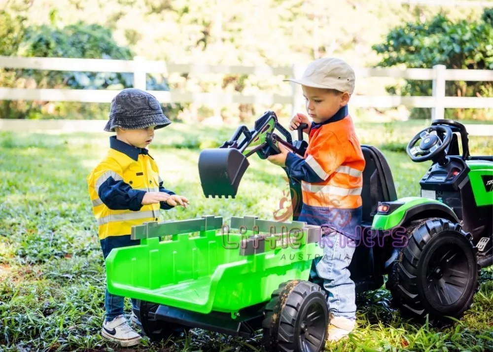 Общие впечатления:Трактор просто офигенный! Пришлось повозиться со сборкой и поиграться с пультом! Через 2 часа ковыряний все получилось. Ездит, заряжается, музыка, фары все работает.Акум держит 2 часа. Буду советовать друзьям.мы очень довольны покупкой.