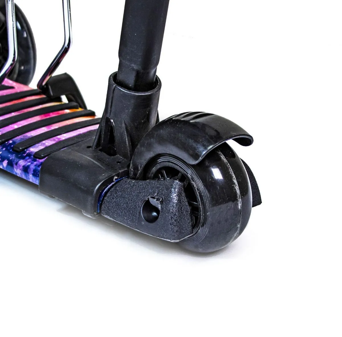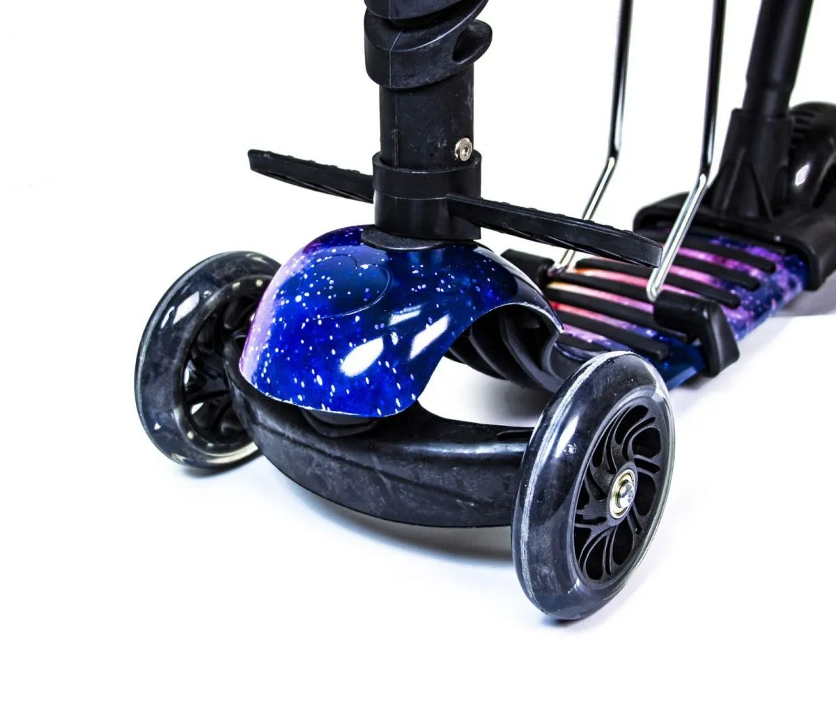 - Колеса полиуретановые литые, при катании светятся: переднее диаметром 12 см, заднее - 8,5 см, оснащены подшипниками ABEC-7.