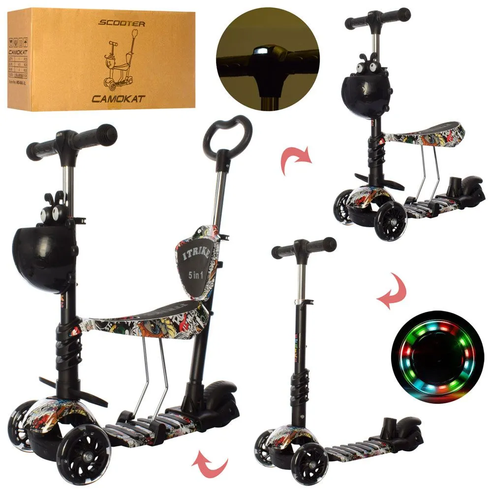Самокат iTrike Maxi JR 3-058-L-WP7, подсветка колёс, 5в1, ЧЁРНЫЙ