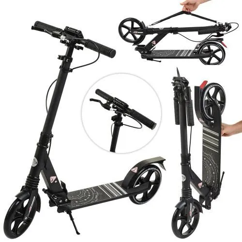 Самокат SR 2-058-B для взрослых, складной - это стильная, качественная и надежная модель, которая подходит для езды детям и взрослым, самокат имеет регулируемый по высоте руль, что позволяет настраивать его под рост пользователя. Самокат SR 2-058-B имеет легкую, но при этом очень прочную алюминиевую раму, рассчитанную выдерживать большие нагрузки, колеса самоката сделаны из полиуретана, что обеспечивает мягкую и комфортную езду, данная модель может складываться, для удобной переноски в комплекте есть специальный ремешок. Самокат SR 2-058-B имеет ручной тормоз, который поможет быстро и своевременно сделать остановку, такой самокат позволит вам весело и интересно провести время, езда на нем также отлично развивает координацию.